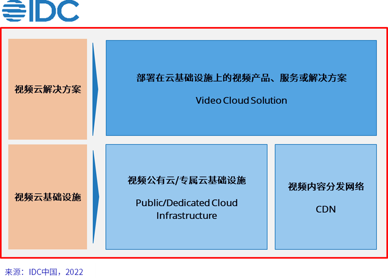 依据IDC界说,本次视频云研讨覆盖了面向视频使用场景的悉数公有云和专属云基础设施,视频内容分发网络,以及在视频云基础设施上布置的视频产品、服务或解决计划。一起,依照视频云使用场景,IDC将视频云解决计划商场划分为“视频直播”、“视频点播”、“音视频通讯”等赛道(音视频开发渠道、媒体处理东西等产品和服务暂计入“其他”分类)。